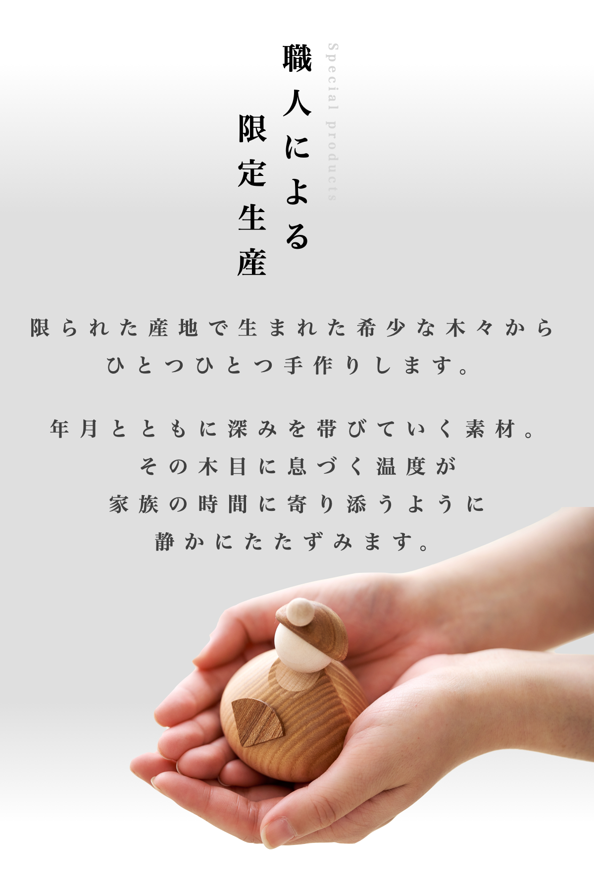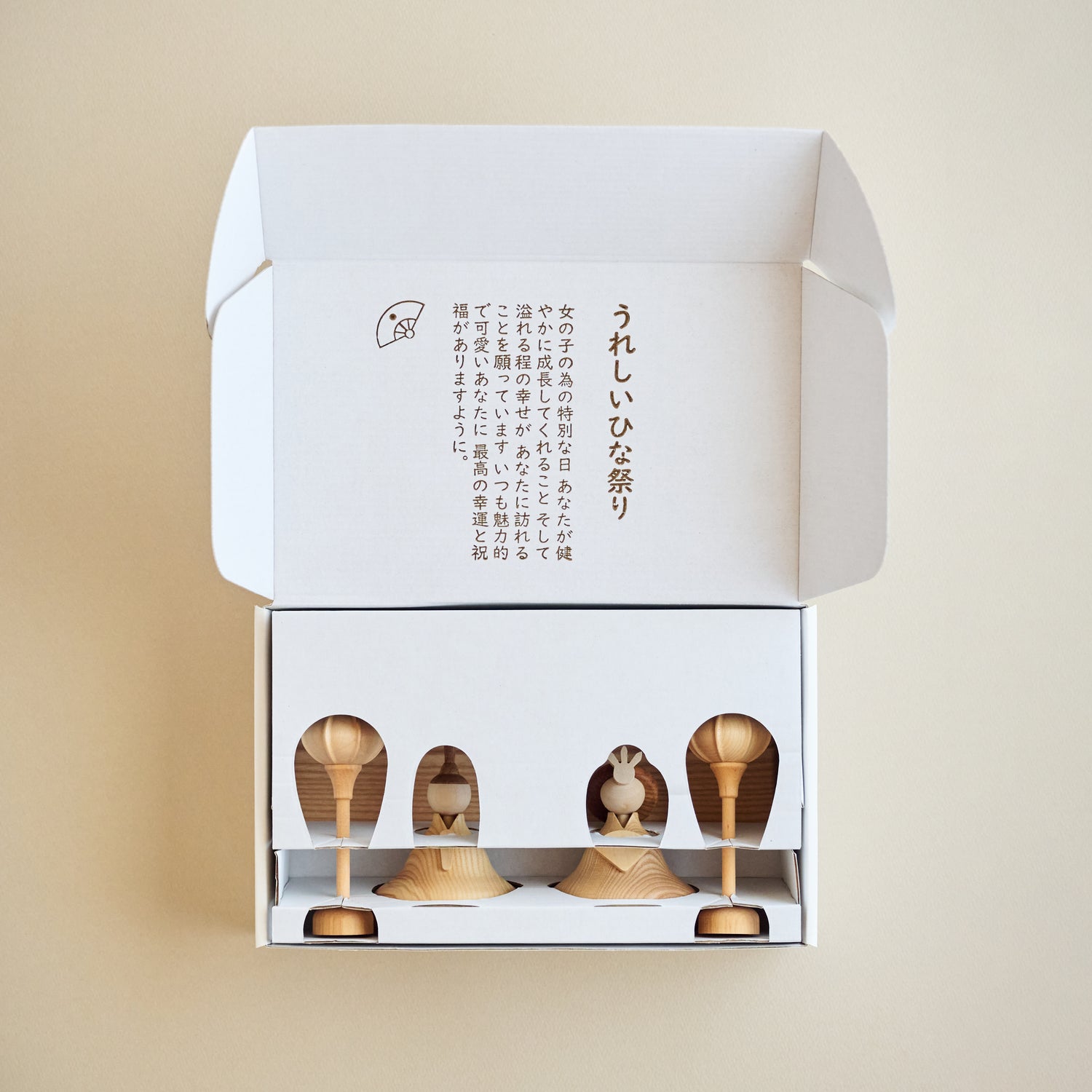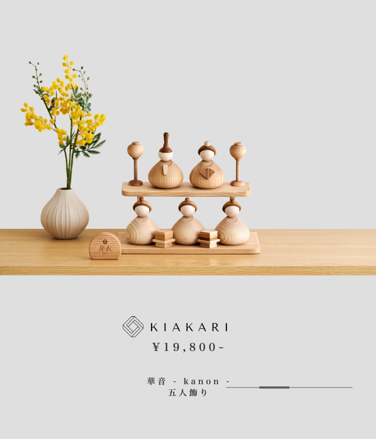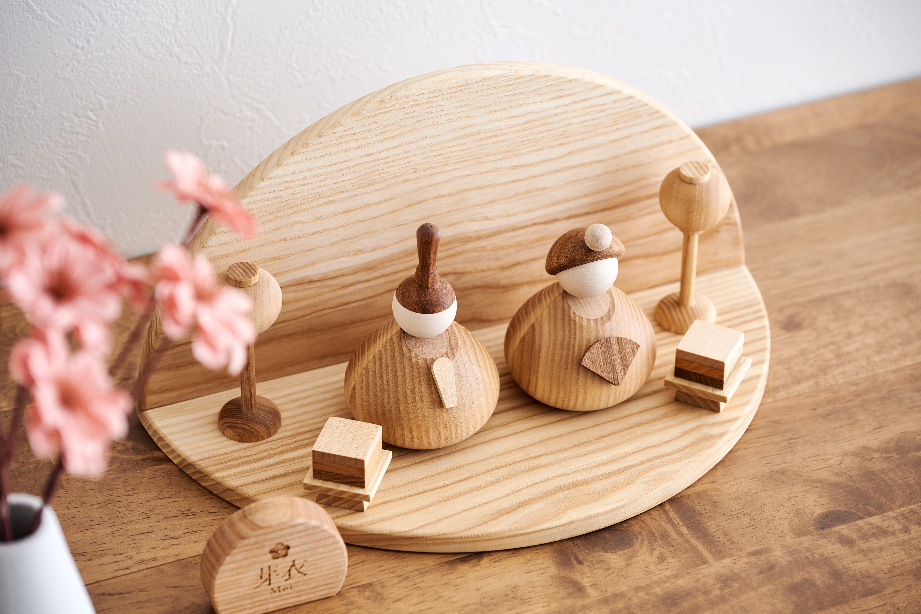 シンプルで洗練されたデザインの雛人形はどんなインテリアにも調和します。天然木の優しい表情でお子様も怖がることなく興味を持ってくれます。
