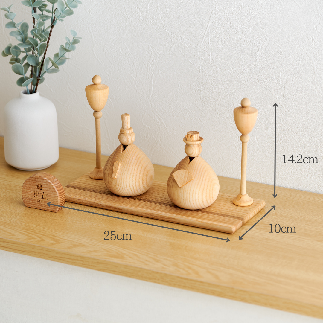 木のぬくもりに、しずくの形をそっとのせて。まあるいフォルムが、春の気配をやさしく運びます。手のひらに収まるサイズなのに、存在感はしっかりと。シンプルで上質な雛飾りを求める方に。